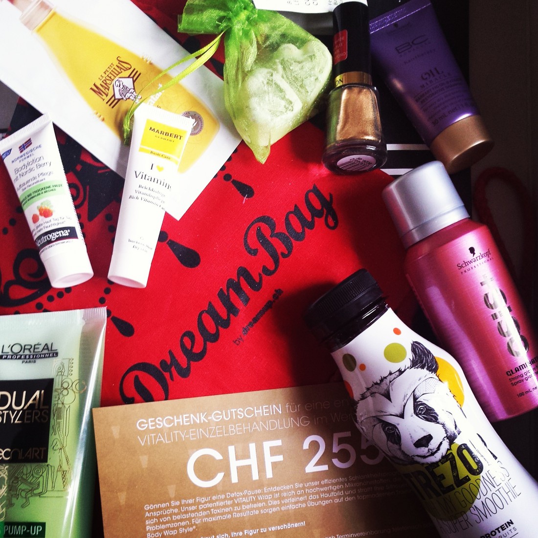 Seid ihr noch auf der Suche nach dem perfekten Weihnachtsgeschenk für die Schwester, Mutter oder Freundin? Wie wär’s mit einer DreamBag? Noch nie von der DreamBag gehört? Kein Problem, ich kläre gerne auf: Das Prinzip ist einfach und funktioniert etwa so, wie wir es beispielsweise von der Pink Box kennen. Nur handelt es sich hier nicht um eine Box sondern gerade um eine ganze Tasche – gefüllt mit tollen Produkten -, die jeden zweiten Monat erscheint. Echt ein Highlight für alle Überraschungsliebhaberinnen und dies noch zum Schnäppchenpreis von 38 Franken. Eine DreamBag enthält jeweils viele tolle Beautyprodukte sowie Promotionen und Gutscheine aus den Welten: Fashion & Beauty, Reisen, Kultur und Genuss.