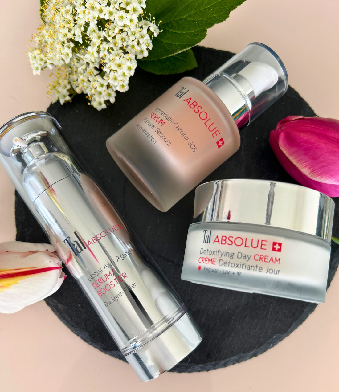 Eine Skincare-Linie, die Anti-Pollution, Anti-Aging und Digital Detox vereint? Klar wurde ich da hellhörig. Denn wer mich kennt, weiss: Ich liebe Effizienz. Sei es im Alltag, bei der Arbeit oder eben in der Gesichtspflege. Und da kommt Tal ABSOLUE ins Spiel. Die Pflegelinie schützt die Haut vor schädlichen Einflüssen wie Luftverschmutzung, Blaulicht und UV-Strahlen. Alles Dinge, denen viele von uns täglich ausgesetzt sind. Ich zum Beispiel verbringe sehr viel Zeit vor dem Bildschirm. Sitze am Computer, vor dem Tablet oder starre auf mein iPhone. Ausserdem bin ich oft in der Stadt unterwegs (Abgase ahoi), liebe die Sonne, trinke gerne mal ein Glas Prosecco und gönne mir eine Tüte Chips. Wenn dann noch Schlafmangel und Stress dazukommen, kann die Haut zickig reagieren. Wissenschaftler:innen gaben diesem Phänomen einen Namen: Skin Burnout. Wenn der Haut alles zu viel wird, reagiert sie mit Rötungen, trockenen Stellen, Unreinheiten und vorzeitiger Hautalterung. Aber keine Sorge, mit Tal ABSOLUE kann man gegensteuern. Natürliche Extrakte aus den Alpen schützen die Haut in Kombination mit High-Tech-Wirkstoffen, damit sie sich wieder von ihrer schönsten Seite zeigen kann.