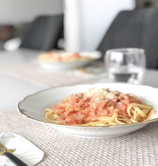 Was Vodka Pasta so gut macht? Das grosse Ganze. Das Mischverhältlis. Die Tomaten, der Rahm, der Vodka. Für mich ein absolutes Comfort Food. Nach einem Teller (oder zwei) bin ich rundum satt und zufrieden. Obs am Vodka liegt? Vielleicht. Vor allem überzeugt mich aber das Geschmackserlebnis, das ein klein wenig süchtig macht.